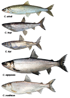 Extant ciscoes of the Laurentian Great Lakes. Credit: A. Muir, GLFC