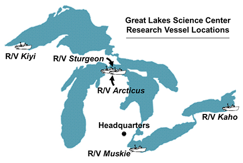 The USGS Great Lakes Science Center is headquartered in Ann Arbor, Michigan, and has biological stations and vessel bases located across the Great Lakes basin with research vessels on each of the Great Lakes. The datasets generated on board the vessels on prey fish abundances are foundational to a binational fishery management regime coordinated by the Great Lakes Fishery Commission that has ensured sustainable sport and commercial fisheries on the Great Lakes for a half-century.