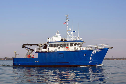 The R/V Arcticus, based in Cheboygan, Michigan, was built in 2014 and currently operates on Lake Michigan and Lake Huron. The Arcticus is used primarily to carry out annual prey fish assessments, which have occurred since the 1970s. The annual assessments provide current information on the prey fish base to fisheries managers and are used to facilitate understanding of long term population trends in the fish community. Data on prey fish populations are especially important in evaluating management strategies such as predator stocking and harvest quotas. The name, "Arcticus", is a nod to the rich legacy of her predecessor, the R/V Grayling. The Grayling was named for the Arctic Grayling, a fish native to the Great Lakes region, which has the scientific name, "Thymallus arcticus". The Arcticus can be at sea thirty days with sleeping accommodations for eight people.
