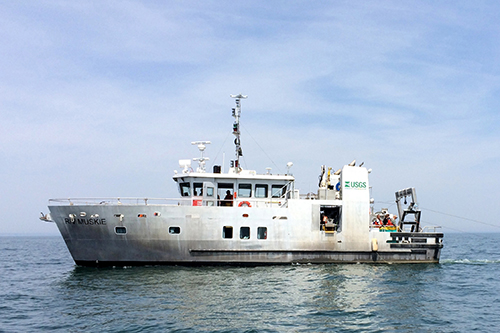The R/V Muskie, based in Sandusky, Ohio, was built in 2011 and currently operates on Lake Erie. The Muskie replaced the R/V Musky II, which was the primary USGS research platform on Lake Erie since 1960. The Muskie is used to assess annual recruitment of major prey and predator fish in western Lake Erie as well as in lake trout restoration research in eastern Lake Erie. The Muskie also participates in studies designed to determine the impacts of environmental changes and invasive species on the Lake Erie ecosystem. The name, "Muskie", was based on the names of her predecessors, the R/V Musky I and R/V Musky II, which reference the native Great Lakes sport fish, the Muskellunge. The Muskie can be at sea five days with sleeping accommodations for six people.