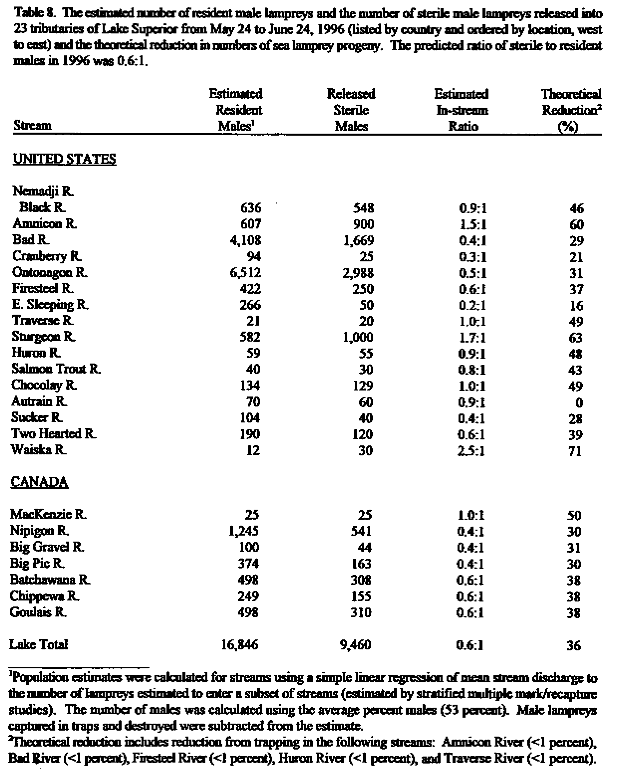 released into 23 tributaries of Lake Superior from May 24 to June 24, 1996
