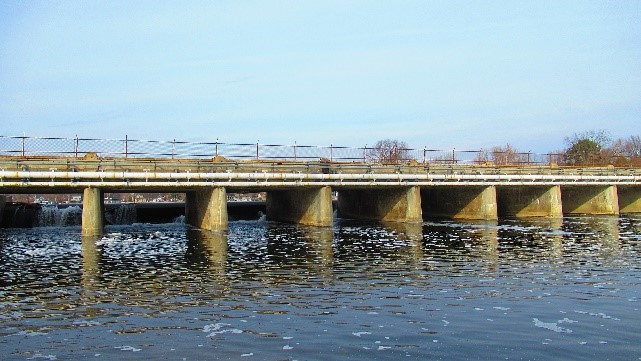 The Flat Rock and Huroc dams are located on the Huron River, MI and are the first significant fish passage barriers upstream from Lake Erie. The Flat Rock Dam is located immediately upstream of the West Huron River drive bridge/railroad bridge and has other infrastructure, including an oil/gas pipeline associated with it. The Huroc Dam is a low head dam just downstream of the Flat Rock Dam.