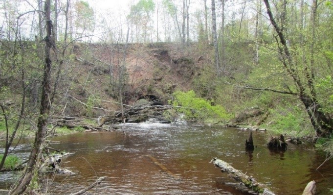 The engineering design for the stream restoration/culvert removal portion of the project was completed in 2021 with engineering design for the materials haul-out road ongoing. The design restored approximately 500 linear feet of stream channel and associated floodplain, removed an existing cast in-place a culvert, and removed approximately 29,000 cubic yards of soil, sloping the grade to 3:1 and 5:1, and disposing of the existing railroad embankment. In-stream habitat restoration features included installation of a j-hook, gravel riffles with boulders, toe wood and riffle habitat rocks, as well as reconnection to the floodplain at the embankment site. Construction began in August, 2023 and was completed in October, 2023 followed by post-restoration monitoring in 2023, 2024 and 2025. Project partners include the GLFC, NOAA, WDNR, WI DATCP, Douglas County, and the Town of Brule. The project was funded through federal (NOAA, USFWS), state (WI Trout Stamp Funds), and generous donations from local sportsmen and conservation groups.